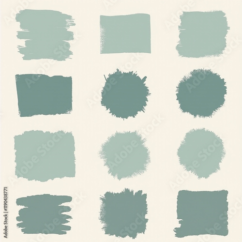 An artistic arrangement of various brushstroke textures in soothing teal tones on a light background.