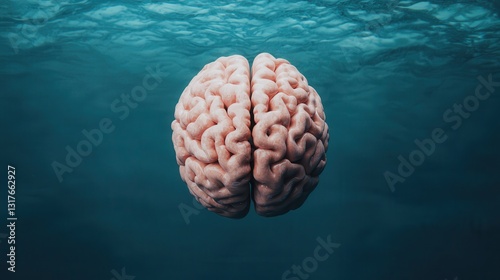 An artistic rendering of a brain submerged in water, symbolizing thoughts, emotions, and the depths of the mind.