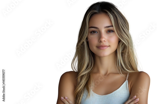 An attractive businesswoman standing with her arms crossed, isolated on a transparent background