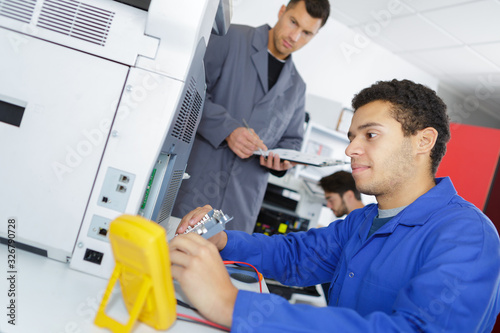 an electrician is inspecting printer