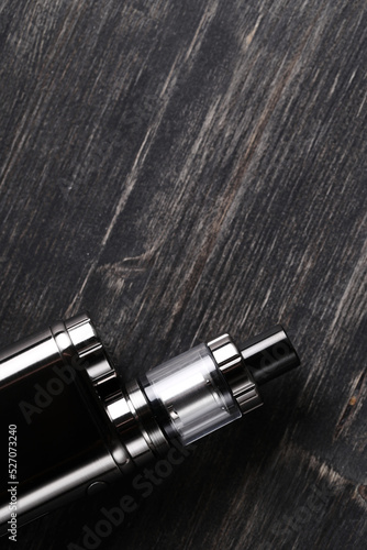 An electronic cigarette for smoking nicotine on a dark wooden background