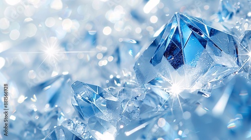 an elegant background with blue and white crystals, showcasing intricate patterns and shimmering reflections.
