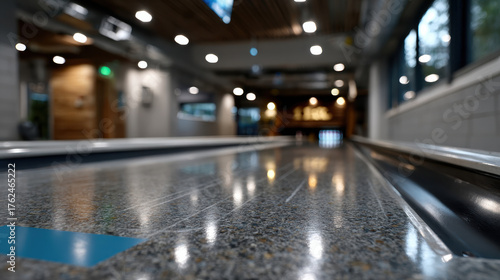 An elegant indoor setting highlighting smooth granite surfaces under stylish lighting, creating a contemporary space ideal for gatherings and social interaction in serene ambiance.