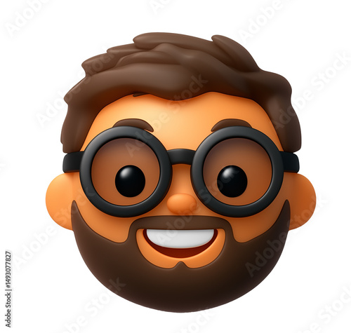 An emoji silhouette of male with short brown hair and a beard, wearing clear goggles over his eyes