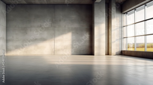 An empty new house with a bright indoor space, featuring a large window, wooden floor, and an open door in the hallway
