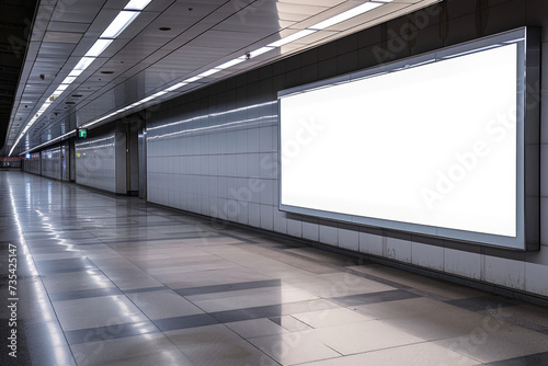 An Empty Subway Station With a Large Billboard