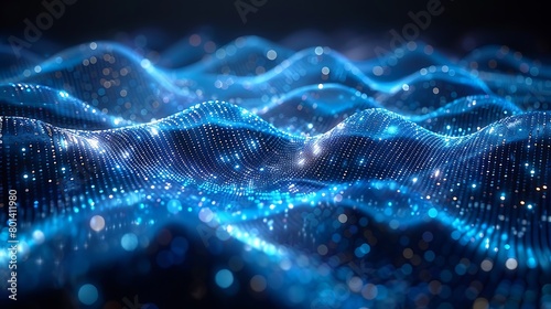 An engaging abstract representation of a digital wave of growth, where multiple layers of blue-toned digital numbers form a sweeping wave.