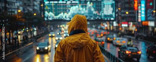 An environmental scientist monitoring air quality in a busy metropolitan area with a digital dashboard that displays realtime pollution levels as colorful, detailed graphs