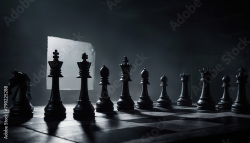 An epic illustration of a chess game. The concept of a chess game. Chess pieces on a chessboard.
