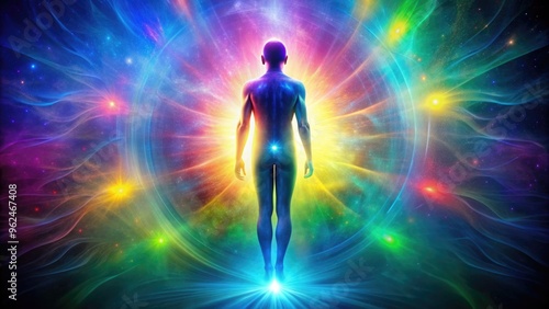 An ethereal image capturing the essence of a soul or aura , energy, spiritual, light, mystical, vibrant, transcendental