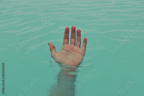 An evocative image featuring a solitary hand extending from the calm water surface, symbolizing a yearning for connection and reflection amidst tranquility and serenity.