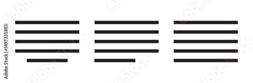 An icon representing the right alignment option for text or objects. Text align icon vector set. Paragraph alignment symbol