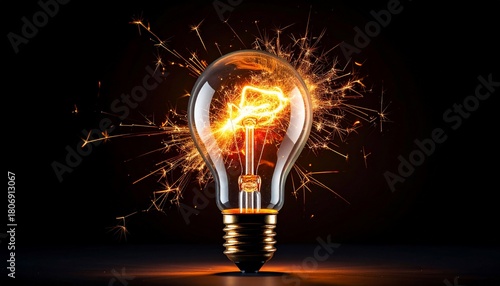 An illuminated lightbulb explodes with sparks creating an electrifying and brilliant display