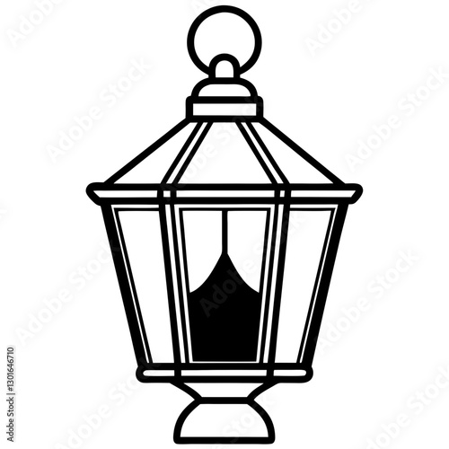 an illustration of an antique black lantern isolated, which has a glass panel design vector illustration