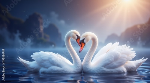 An image of two elegant white swans forming a heart shape with their necks on a clean background.