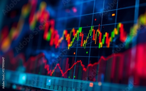 An image showcasing a digital display. It features fluctuating lines and a grid, suggesting trends, data, and markets. The colors are vibrant, creating a dynamic visual representation. Hints: finance,
