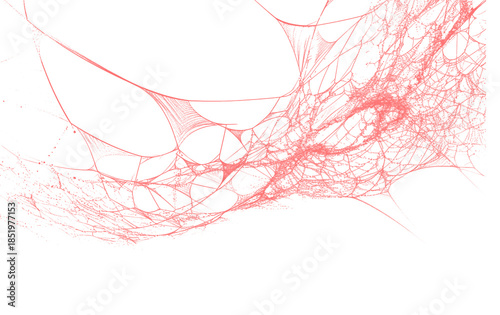 An intricate spider web with light pink lines on a transparent background, ideal for halloween effects or delicate decorative overlays