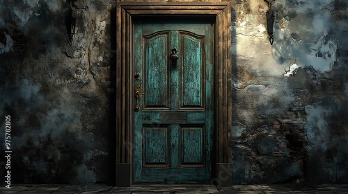 An Old Weathered Door on a Crumbling Wall