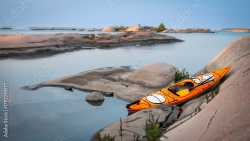 An Orange Kayak Parked on the Smooth Granite of Georgian Bay