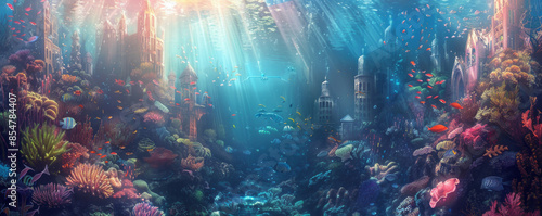 An underwater city with crystal-clear waters.