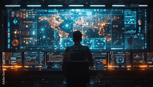 Analyst studying data patterns on multiple screens