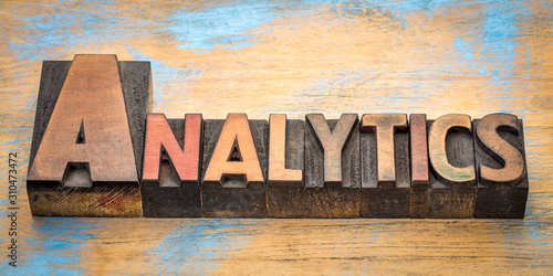 analytics word in wood type