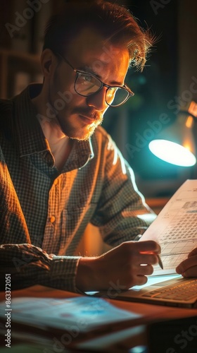 Analyzing Data: Data analyst working on a spreadsheet concept