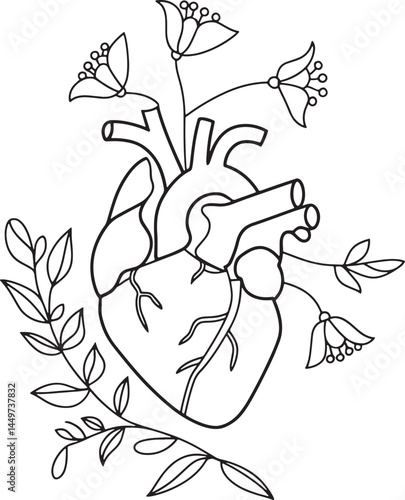 Anatomical Heart Illustration with Floral Elements