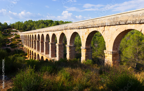 ancient aqueduct in summer forest