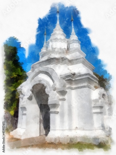Ancient architecture of northern thailand watercolor style illustration impressionist painting.