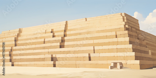Ancient beige stone structure, blue sky, and white clouds, minimalist, mystery, history, and exploration, perfect for travel and adventure.