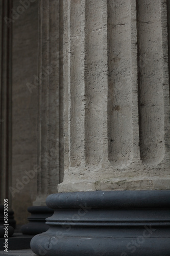 ancient Corinthian column on round base close up