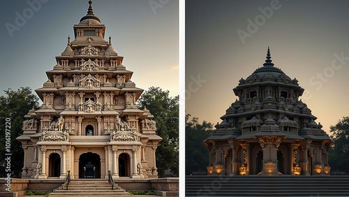 Ancient Indian Temple Architecture Ornate Stonework and Detailed Carvings