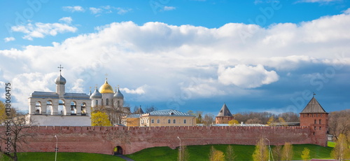 Ancient Kremlin with the Sofia Cathedral and belfry in Veliky Novgorod