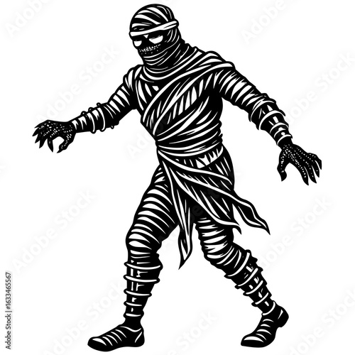 Ancient mummy with bandages isolated on white background, ready for halloween