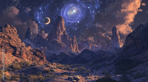 Ancient rugged peaks kissed by a shimmering aurora borealis in the vast, clear night sky