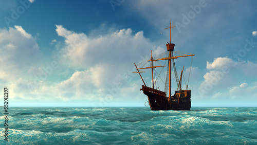 Ancient spanish ship in the ocean