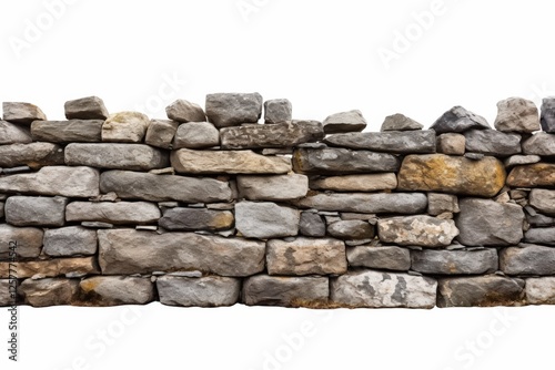 Ancient Stone Wall Isolated on White Background Perfect for Historical or Nature-themed Projects and Designs