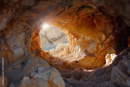 Ancient Tomb in the Desert with Shimmering Light Illuminating Interior.