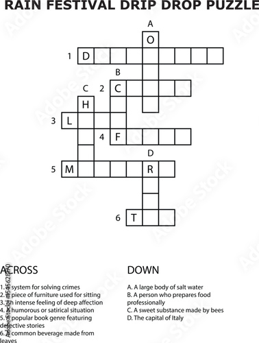 And Crossword Puzzle Game Rain Festival Theme Numbered Clues Across Down vector
