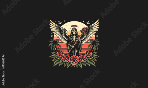 angel of death and rose flowers vector artwork design