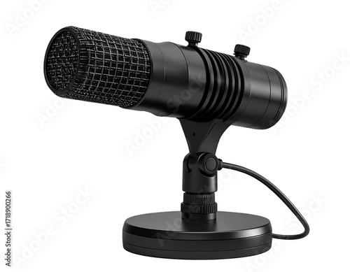 Angled Side View of Modern Black Microphone, PNG Transparent
