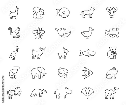 Animals icons set . editable line icons, outline, wildlife and nature symbols