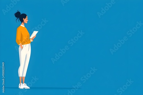 animated character of a woman in a business casual outfit with a notepad in her hand
