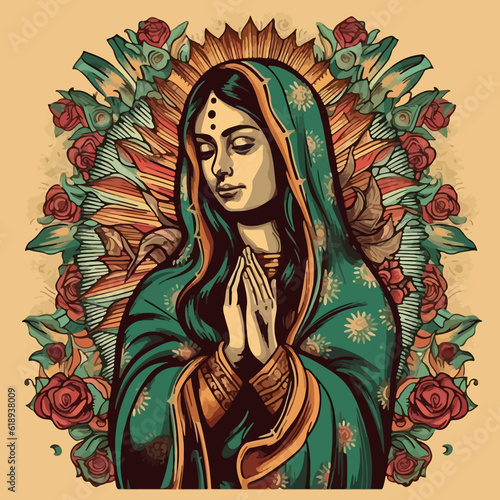 Animated illustration of Virgin of Guadalupe. AI Generated