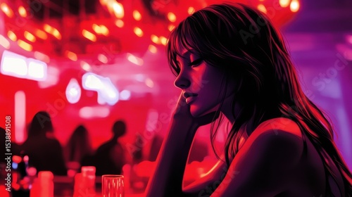 Anime Woman Portrait in a Nightclub – Vibrant and Stylish Nightlife Scene