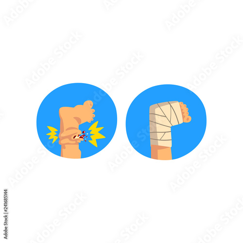 Ankle fracture, physical injury, first aid and treatment vector Illustration on a white background