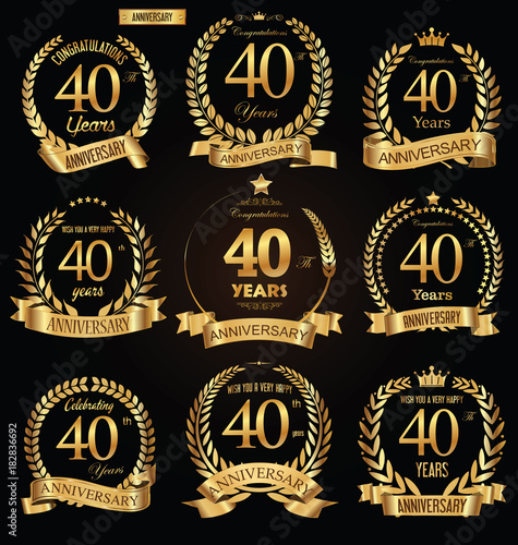 Anniversary golden retro laurel wreath vector illustration collection