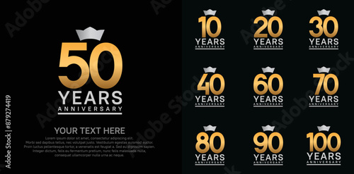 anniversary logotype set. gold color and silver crown can be use for celebration event