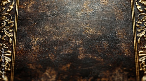 Antique Book Cover: Dark Brown Leather with Gold Embellishments